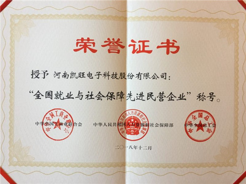 12月20日上午,記者獲悉在全國(guó)召開(kāi)的就業(yè)與社會(huì)保障先進(jìn)民營(yíng)企業(yè)暨關(guān)愛(ài)員工實(shí)現(xiàn)雙贏表彰大會(huì)上,我市民營(yíng)企業(yè)河南凱旺電子科技股份有限公司榮獲“全國(guó)就業(yè)與社會(huì)保障先進(jìn)民營(yíng)企業(yè)”稱(chēng)號(hào),中華全國(guó)工商業(yè)聯(lián)合會(huì)、中華人民共和國(guó)人力資源和社會(huì)保障部、中華全國(guó)總工會(huì)為該企業(yè)頒發(fā)了榮譽(yù)證書(shū)。