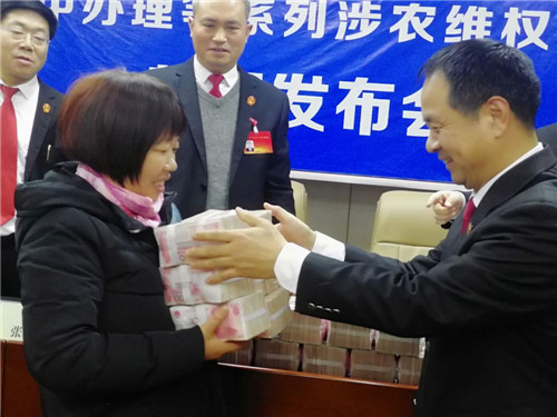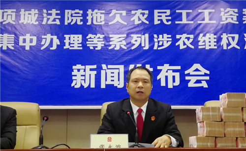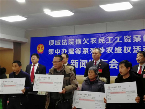 “感謝項(xiàng)城法院的領(lǐng)導(dǎo),他們一心為民,克服種種困難,幫助我們要回了血汗錢?!?2月24日,項(xiàng)城法院拖欠農(nóng)民工工資案件集中辦理等系列涉農(nóng)維權(quán)活動(dòng)新聞發(fā)布會(huì)在該院召開,16名涉農(nóng)維權(quán)案件當(dāng)事人從項(xiàng)城法院黨組成員、院長(zhǎng)張永波的手中接過索要許久的血汗錢,喜極而泣。