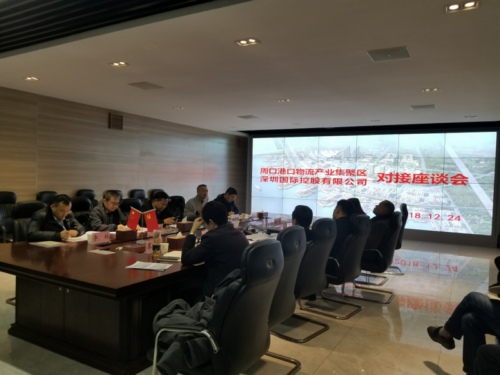12月24日下午,深圳國際控股有限公司總裁李海濤、副總裁易愛國一行蒞臨周口港區(qū)進行投資考察。港區(qū)黨委書記孫紅偉,管委會主任程若光,黨委委員、管委會副主任滿非,管委會副主任劉明瀟等陪同考察。