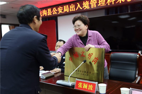 12月26日,扶溝縣長(zhǎng)張穎波向榮獲河南省“巾幗文明崗”的縣公安局出入境管理科授牌儀式在縣公安局九樓會(huì)議室舉行。副縣長(zhǎng)任松奎,縣政府黨組成員、縣公安局局長(zhǎng)田豪杰,縣公安局政委石偉等出席授牌儀式。