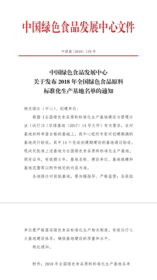 12月30日,中國(guó)綠色食品發(fā)展中心發(fā)布2018年全國(guó)綠色食品原料標(biāo)準(zhǔn)化生產(chǎn)基地名單,全國(guó)14個(gè)申報(bào)的基地獲批,鄲城縣人民政府在胡集鄉(xiāng)、汲冢鎮(zhèn)、李樓鄉(xiāng)、巴集鄉(xiāng)、城郊鄉(xiāng)、寧平鎮(zhèn)、吳臺(tái)鎮(zhèn)、錢店鎮(zhèn)等8個(gè)鄉(xiāng)鎮(zhèn)建設(shè),河南天豫薯業(yè)有限公司作為對(duì)接企業(yè)的12萬(wàn)畝紅薯種植基地榜上有名。