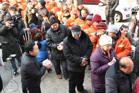 在“羊肉哥”的愛心影響下,部分愛心企業(yè)紛紛加入到關(guān)愛環(huán)衛(wèi)工、殘疾人活動(dòng)中?;顒?dòng)現(xiàn)場(chǎng),尉氏縣某蔬菜專業(yè)種植合作社總經(jīng)理給大家捐助了救心菜露酒。鄭州某食品有限公司給大家捐助了水餃和湯圓。活動(dòng)現(xiàn)場(chǎng),“餃子哥”王孝力、“投幣哥”鄭景軍、“粽子哥”劉明廣、“霹靂哥”武德正,鄭州市第三屆道德模范、鄭州愛心導(dǎo)盲犬關(guān)愛中心關(guān)驪,鄭州市第四屆道德模范張升華、周口人鄭能量公益聯(lián)盟秘書長(zhǎng)楊正華、金水區(qū)紅十字黨員助殘志愿者服務(wù)隊(duì)、河南省紅十字結(jié)伴同行脫貧路志愿服務(wù)總隊(duì)、河南省紅十字結(jié)伴同行脫貧路志愿服務(wù)總隊(duì)等公益人士和團(tuán)隊(duì)紛紛為愛心活動(dòng)助力。