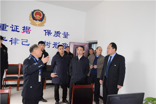 調(diào)研組一行深入鹿邑縣公安局新辦公業(yè)務(wù)用房工地、執(zhí)法辦案中心、高集派出所新址等處實(shí)地調(diào)研基層建設(shè)工作。鹿邑縣副縣長(zhǎng)、縣公安局長(zhǎng)何新敏介紹了2018年鹿邑公安整體工作以及高質(zhì)量公安建設(shè)有關(guān)情況。