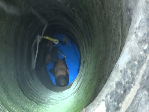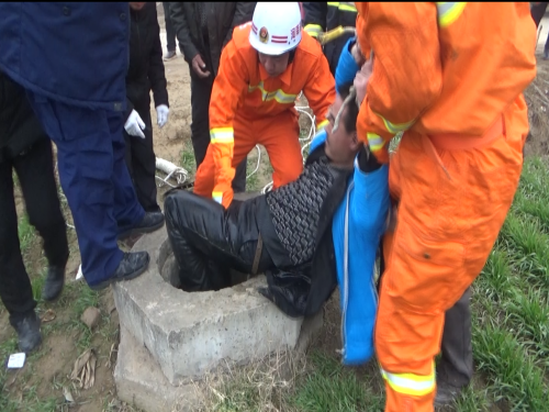 1月14日早上8時許,接到群眾報警后,淮陽縣消防大隊立即出動一輛搶險救援車、一輛水罐車及8名指戰(zhàn)員趕赴救援。到達現(xiàn)場后,民警發(fā)現(xiàn)男子掉進一個沒有蓋的澆灌井內(nèi),井深約10米,井口直徑大約20公分。