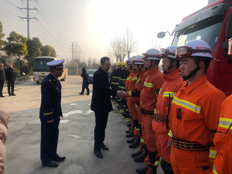 在開發(fā)區(qū)消防大隊,王文峰與每一位消防隊員握手,詳細詢問他們的工作、生活、學習情況。王文峰指出,2018年,開發(fā)區(qū)消防大隊牢記“聽黨指揮,能打勝仗,作風優(yōu)良”,努力訓練,敢于戰(zhàn)斗,面對一系列急難險重任務能夠拉得出、打得贏,為保障人民群眾生命財產安全作出了重要貢獻。新的一年,全市消防救援隊伍要繼續(xù)發(fā)揚特別能吃苦、特別能戰(zhàn)斗的優(yōu)良傳統(tǒng),加強應急救援綜合能力建設,真正發(fā)揮好應急救援主力軍和國家隊的職能作用。