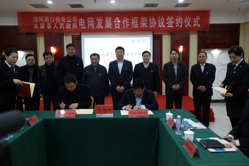 2月13日,太康縣人民政府與周口市供電公司舉行電網(wǎng)發(fā)展合作框架協(xié)議簽約儀式。周口市供電公司總經(jīng)理郭雷、副總經(jīng)理靳玉林,紀(jì)委書記、工會(huì)主席張浩,太康縣領(lǐng)導(dǎo)王國(guó)璽、董鴻、喬偉等出席簽約儀式。縣委常委、縣委辦公室主任董鴻主持簽約儀式。