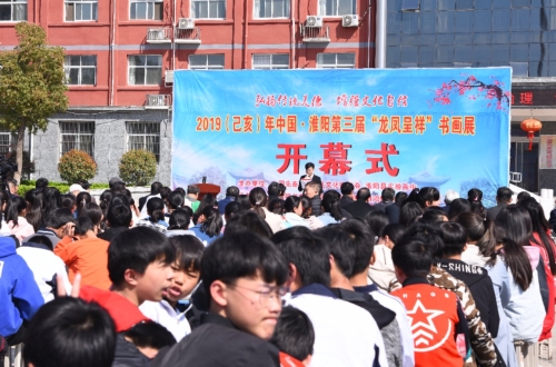 3月31日是農(nóng)歷2月25日,民間認(rèn)為是伏羲誕辰。為慶祝人文始祖太昊伏羲華誕,進一步繁榮書畫優(yōu)秀傳統(tǒng)文化,2019年中國?淮陽第三屆“龍鳳呈祥”書畫展在淮陽縣實驗高中舉行。中國先秦史學(xué)會龍文化研究會會長宮長為和省內(nèi)外的百余名知名書畫家出席活動。