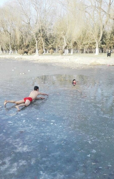 去年1月1日,甘肅省金昌市龍泉公園內(nèi)一名6歲男孩墜入湖中冰窟。在附近游玩的王保華見狀,毫不猶豫地脫掉厚重的冬衣,只剩一條紅褲頭,躬身走上了冰面。接近男孩時,他匍匐在冰面上,在同伴的幫助下,奮力把編好的藤條遞向在水中掙扎的男孩 。在其他愛心人士的共同幫助下,男孩最終獲救,而王保華與同伴悄悄離開了。事后,中央電視臺等媒體紛紛報道了此事,一時間,“紅褲頭”救人的事跡,在那個寒冷的冬天引起了強烈反響。
