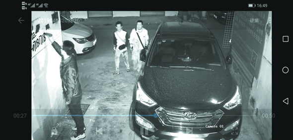 監(jiān)控視頻顯示,4月13日3時(shí)21分,3名男子來(lái)到項(xiàng)城市仁和街一家屬院門前,分別在墻上涂畫小廣告。