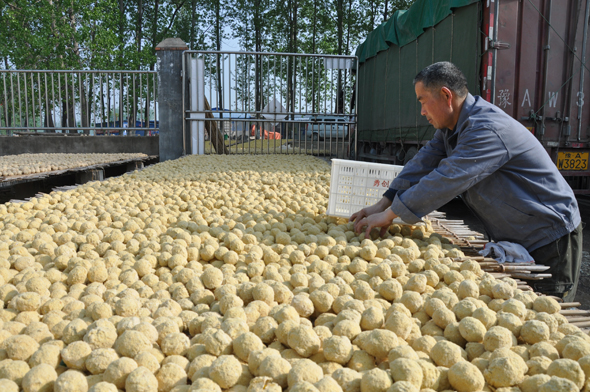 練集鎮(zhèn)閆橋村以變蛋加工聞名全市。該村有30多個變蛋加工廠,帶動周邊多個行政村通過變蛋加工實現(xiàn)致富增收。去年,該村加工變蛋3600多萬個,通過電商平臺遠銷省內(nèi)外。圖為4月28日上午,該村勇創(chuàng)變蛋加工廠技術(shù)人員在查看變蛋晾曬情況。