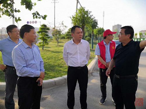 李全林一行沿著迎賓大道實地查看道路兩側(cè)綠化、市政工程基礎(chǔ)設(shè)施建設(shè)、商戶門前五包制度落實、各責任單位問題整改情況等,認真聽取相關(guān)負責人工作匯報,針對現(xiàn)場檢查中發(fā)現(xiàn)的問題,逐一分析研判,并提出具體整改意見。