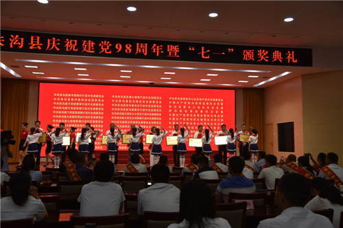 頒獎典禮共表彰優(yōu)秀共產(chǎn)黨員99名、優(yōu)秀黨務(wù)工作者60名、先進(jìn)黨組織73個。少先隊員為優(yōu)秀代表頒獎。