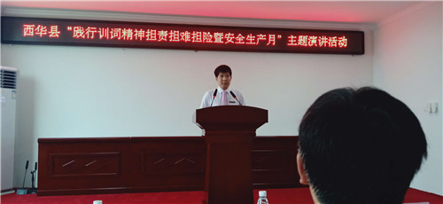 今年6月是全國第18個(gè)“安全生產(chǎn)月”,為牢固樹立安全發(fā)展理念,增強(qiáng)全民安全生產(chǎn)意識。6月28日下午,西華縣舉辦“踐行訓(xùn)詞精神擔(dān)責(zé)擔(dān)難擔(dān)險(xiǎn)暨安全生產(chǎn)月”主題演講比賽,來自應(yīng)急管理系統(tǒng)的15名選手齊聚賽場,以一個(gè)個(gè)生動(dòng)的故事和深入人心的道理,深刻闡述了“安全”的內(nèi)涵。