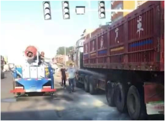 7月6日早上6時40分,一輛貨車由東至西行駛到西扶超限檢測站負(fù)責(zé)的環(huán)保檢測卡點時輪胎突然起火,執(zhí)法人員發(fā)現(xiàn)后,立即用車載喇叭喊話提醒司機停車,此時車輛正好停在值勤卡點紅綠燈處,一旦火勢不受控制,將給司機及周邊群眾帶來不可預(yù)測的危險與損失,帶班站長李建東一邊組織人員進(jìn)行救火,一邊通知站長劉洪亮。得到警情后,劉洪亮站長立即組織增援,同時指令張光輝、劉伯倫駕駛站內(nèi)高壓撒水車迅速趕往事故現(xiàn)場,經(jīng)過共同努力,著火處被撲滅,避免了一場火災(zāi)事故的發(fā)生。事后,貨車司機十分感動,拉著執(zhí)法人員的手深表謝意。