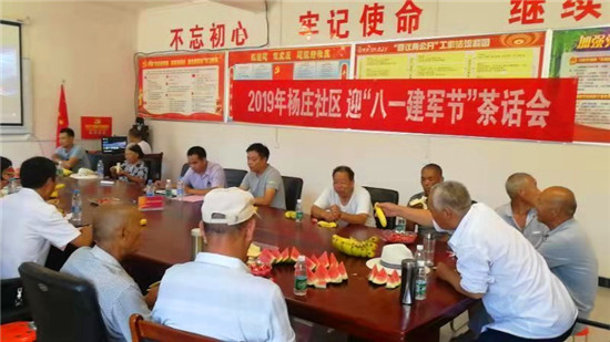 7月27日,在王一博、趙玉超同志的帶領(lǐng)下,辦事處全體班子成員帶領(lǐng)駐村干部帶著慰問品和慰問金,到各自分包社區(qū)開展走訪慰問活動(dòng),在不漏一戶、不落一人的慰問要求下,全體干部不畏酷暑,把黨和政府的關(guān)懷及時(shí)送到退役軍人家中。楊莊社區(qū)94歲的退役軍人楊計(jì)得退伍后,熱心公益事業(yè),樸實(shí)純粹、淡薄名利,慰問結(jié)束后,他緊緊拉住辦事處干部的手飽含熱淚,動(dòng)情地說:感謝共產(chǎn)黨,感謝黨和政府的關(guān)懷,現(xiàn)在縣里發(fā)展那么好,如果再年輕十歲,我還為社區(qū)發(fā)展貢獻(xiàn)自己的力量。