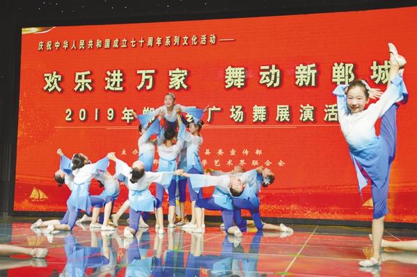 近日,以“歡樂進萬家 舞動新鄲城”為主題的2019年鄲城縣廣場舞展演活動在單程縣融媒體中心演播廳舉行。來自全縣各個鄉(xiāng)鎮(zhèn)的20支代表隊依次登場,參賽隊員身著統(tǒng)一服裝,隨著優(yōu)美的旋律翩翩起舞。記者 徐松 通訊員 朱應召 攝