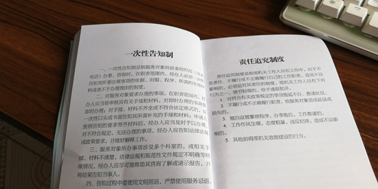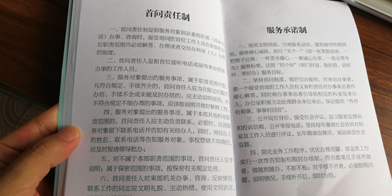制度規(guī)定,服務(wù)對象到縣委組織部辦事、咨詢或來電時,首個接待的工作人員必須熱情、禮貌、耐心接待辦理或引領(lǐng)交給相關(guān)職責(zé)科室辦理。凡符合規(guī)定,手續(xù)齊全的,限時辦結(jié),手續(xù)不全未能及時辦結(jié)的,要主動向服務(wù)對象說明原因……縣委組織部常務(wù)副部長薛斌告訴記者:“通過扎牢制度的籠子,讓部機(jī)關(guān)工作人員做到一張笑臉迎客,一把椅子讓座,一杯茶水暖心,一顆誠心辦事,一流業(yè)績爭先的服務(wù)標(biāo)準(zhǔn),切實達(dá)到門好進(jìn)、臉好看、話好聽,事好辦的目的?!?/p>