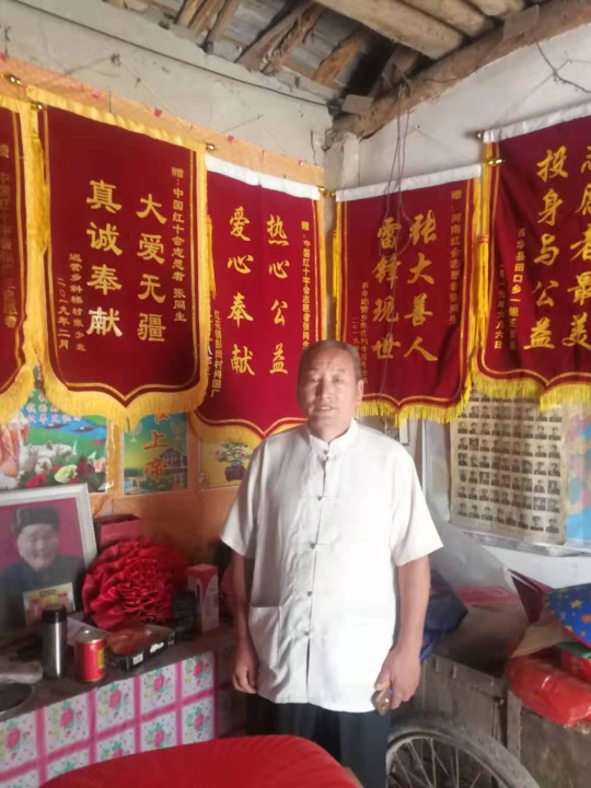 張同生今年65歲,發(fā)揚雷鋒精神,處處奉獻(xiàn)愛心,自愿參加河南省紅十字會志愿者,建立救病扶困基金,為困難病人墊付醫(yī)療費,幫助病人聯(lián)系醫(yī)院、專家教授治病,辦理住院手續(xù),為病人干的好事實事,就像秋后熟透的葡萄—一串一串的。病人為他送的錦旗掛滿了3間堂屋,病人為他送的表揚信少說也有半尺厚。