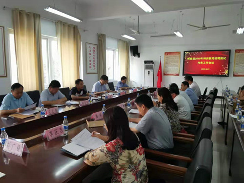 8月23日,鄲城縣召開2019年特崗教師招聘面試考務(wù)工作會(huì)議,明確分工,強(qiáng)化責(zé)任,確??紕?wù)工作順利??h政府辦公室副主任楊培爭、縣紀(jì)委常委趙天位、縣編辦主任王民仰、縣教體局局長劉現(xiàn)營、縣人社局局長劉自忠、縣公安局治安大隊(duì)教導(dǎo)員葛染,以及面試工作組全體人員參加會(huì)議。