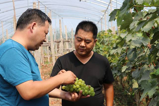 “2016年我們財(cái)政局出資13萬(wàn)元,幫村民建了這個(gè)15畝的葡萄園,由30戶貧困戶做股東,孫東獻(xiàn)懂葡萄種植技術(shù)由孫東獻(xiàn)來(lái)管理,每年帶動(dòng)近十戶貧困戶來(lái)葡萄園打工,每戶凈收入4000多元,加上出售葡萄的分紅,每戶凈收入提高到近5000元。并且這是個(gè)可持續(xù)發(fā)展的項(xiàng)目?!瘪v村書記侯俊昌介紹說(shuō)。