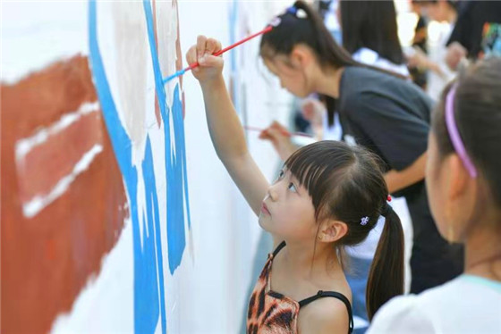 活動現(xiàn)場,參與者們從設(shè)計構(gòu)圖到勾勒輪廓,從調(diào)制顏料到搭配色彩,每一個步驟、每一道工序都一絲不茍。大家圍繞“禮贊新中國 歌頌新時代”這一主題,在近百米長的墻面上認真作畫,只見現(xiàn)場參與者工筆勾線、揮毫上色,經(jīng)過一個多小時的創(chuàng)作,“社會主義核心價值觀”“中國夢”“市民文明公約”等愛國元素躍然墻上……內(nèi)容豐富、形式多樣,一幅幅作品色彩明快、質(zhì)樸純?nèi)?,充分展示了書畫志愿者們對祖國和家鄉(xiāng)的熱愛,對藝術(shù)的追求和對美好生活的向往,宣傳了中國傳統(tǒng)書畫藝術(shù),提升了新時代文化自信,為該縣美術(shù)愛好者帶來了一場藝術(shù)盛宴。
