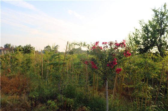 米杰是第一個(gè)嘗試吃螃蟹的田園綜合體追夢(mèng)人,這個(gè)在外打拼多年事業(yè)有成的豫東漢子,放棄了原本舒適的城市生活,于去年初回到老家大米行政村,通過(guò)流轉(zhuǎn)連片成方土地,栽植紫薇、紅梅、丁香、臘梅、石楠、海棠、櫻花、碧桃、無(wú)花果、蘋(píng)果、藍(lán)莓、石榴、冬棗等各類喬木果樹(shù),并配套完成地下供排水管網(wǎng)和線纜埋設(shè)等現(xiàn)代化農(nóng)田設(shè)施,和鎮(zhèn)里已經(jīng)形成的萬(wàn)畝中藥材基地連成一片,形成規(guī)模效應(yīng)。朝著他心目中的“一田花、一片林、一灣水、一首詩(shī)、一幅畫(huà)”——惠濟(jì)灣田園旅游新高地闊步前行。