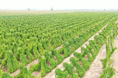 在張嶺村的西北角,200多畝地的山藥架排列整齊、枝葉繁茂。種植戶張寧偉騎著三輪車(chē)每天在山藥地邊巡視好幾遍,看長(zhǎng)勢(shì)、看墑情、盼市場(chǎng)價(jià)格穩(wěn)定?!斑@一塊地30多畝是九斤黃,那一塊地五六畝是育種用的白玉,還有一塊地種了10多畝的西施。一畝地能產(chǎn)8000斤左右,第一年畝投資5000元左右,如果今年的價(jià)格持續(xù)在3元左右,那就太好了。”張寧偉看著長(zhǎng)勢(shì)良好的山藥,美滋滋地盤(pán)算著。他說(shuō),他種植山藥是跟著村里的種植合作社種的。合作社的負(fù)責(zé)人叫張劉杰,這200多畝地分為好多家,栽種的時(shí)候是統(tǒng)一供種、統(tǒng)一管理,到時(shí)候統(tǒng)一銷(xiāo)售,穩(wěn)賺不賠。在鄉(xiāng)黨委政府的引導(dǎo)下,特色種植專(zhuān)業(yè)合作社積極發(fā)揮作用,在汲水鄉(xiāng)種植山藥的面積突破了2000畝。