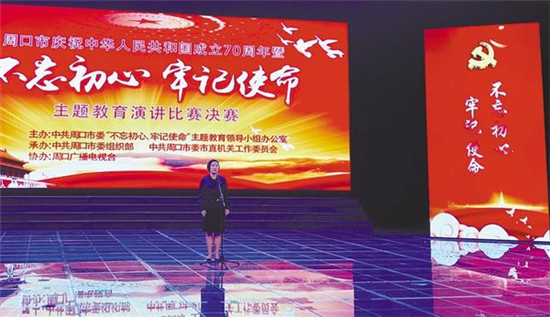 開發(fā)區(qū)積極響應(yīng)號召,組織人員參加全市慶祝中華人民共和國成立70周年暨“不忘初心、牢記使命”主題教育演講比賽。開發(fā)區(qū)機(jī)關(guān)第一黨支部黨員李媛媛經(jīng)過激烈角逐,順利進(jìn)入決賽。記者 王泉林 攝