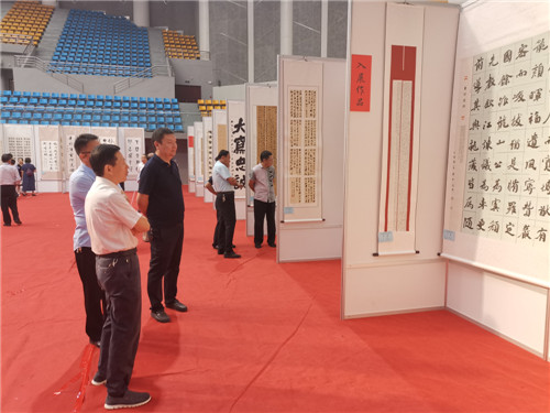 為紀(jì)念抗日民族英雄吉鴻昌將軍就義85周年,大力弘揚(yáng)愛國主義精神和中華民族優(yōu)秀傳統(tǒng)文化,9月28日上午,首屆“吉鴻昌精神杯”全國書法大賽暨名家作品邀請(qǐng)展在扶溝縣體育館隆重舉行。原廣州軍區(qū)政治部副主任陳大民少將、解放軍報(bào)社原副社長田仁德少將、解放軍報(bào)社原副總編孫臨平少將、解放軍裝備學(xué)院原副政委孫南京少將、解放軍總后勤部某研究所原所長楊廷欣少將、吉鴻昌將軍親屬鄭吉安大校,市委常委、周口軍分區(qū)政委孫先振,市政協(xié)副主席張文平,扶溝縣四個(gè)班子領(lǐng)導(dǎo)及副處級(jí)干部等出席開幕式??h委副書記、政法委書記詹凱主持儀式。