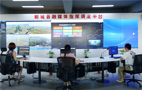 “要扎實抓好縣級融媒體中心建設(shè),更好地引導(dǎo)群眾、服務(wù)群眾。”作為省級媒體融合示范縣,鄲城縣委、縣政府高度重視媒體融合發(fā)展,縣委書記羅文閣、縣長李全林多次深入融媒體中心建設(shè)現(xiàn)場調(diào)研指導(dǎo)工作,并提出殷切期望。要求縣委宣傳部、融媒體中心組織專人負責(zé)、專業(yè)專攻、專題研究,走出去學(xué)習(xí)先進、坐下來結(jié)合實際、多動腦探索創(chuàng)新,“鄲城縣融媒體中心”于2018年10月建成,躋身全市融媒體建設(shè)第一方陣。2018年11月,河南省縣級新時代文明實踐中心、志愿服務(wù)中心、融媒體中心建設(shè)現(xiàn)場會在鄲城縣召開。