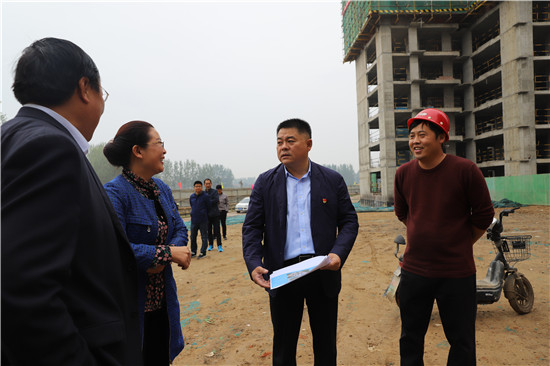 在未來家園四期項目建設工地,孫紅偉一行詳細聽取了施工單位負責人對項目施工現(xiàn)場情況的介紹,針對項目工地現(xiàn)場施工安全、環(huán)保要求,衛(wèi)生環(huán)境治理、項目觀摩展板設計、擺放等問題,孫紅偉現(xiàn)場提出意見和要求。