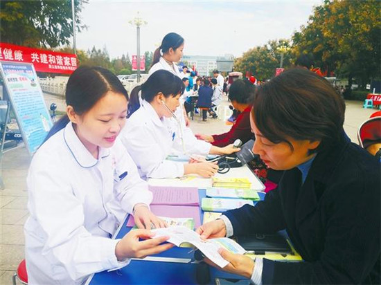 10月10日是世界精神衛(wèi)生日,當(dāng)日上午9時至11時,周口市衛(wèi)健委組織我市28家醫(yī)院在川匯區(qū)文化廣場舉辦主題為“心理健康社會和諧,我行動”的義診活動。活動現(xiàn)場,100多名醫(yī)務(wù)人員向群眾提供免費疾病咨詢,宣傳普及精神衛(wèi)生健康醫(yī)學(xué)知識,紛紛開出身心健康處方,受到群眾的熱烈歡迎。