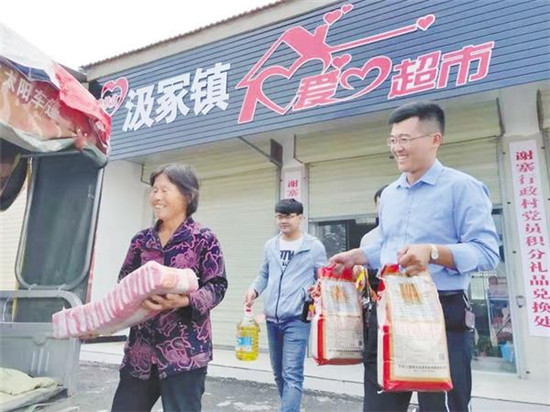 近日,記者在鄲城縣汲冢鎮(zhèn)謝寨行政村“愛心超市”看到,64歲的孫雪梅用鎮(zhèn)黨委、鎮(zhèn)政府給予的積分卡換取不少生活用品。為讓全鎮(zhèn)187戶兜底特困戶選到稱心如意的物資,汲冢鎮(zhèn)黨委、鎮(zhèn)政府匯聚全社會的愛心,備足米、面、油、棉衣、棉被等物資,將濃濃的黨恩通過“愛心超市”傳向千家萬戶。