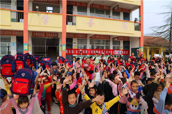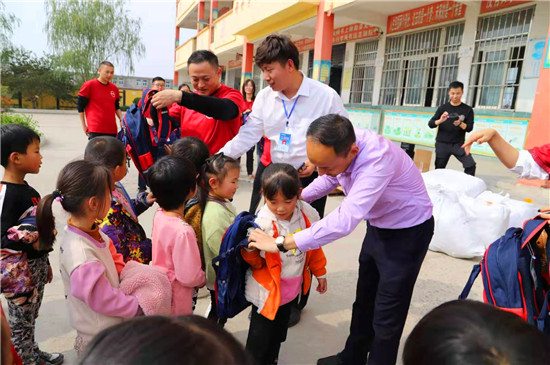 當(dāng)日上午,周大福集團(tuán)組織了15名員工組成義工隊(duì),在周口區(qū)域負(fù)責(zé)人王保安的陪同下,帶著總價(jià)值3萬余元的300套愛心物資,送到學(xué)生手中?,F(xiàn)場,他們與學(xué)生愛心互動(dòng)、親切交流,為學(xué)生們背上書包、送上文具,關(guān)心學(xué)生生活和學(xué)習(xí)情況。當(dāng)了解到學(xué)校資金緊張,師生還沒有統(tǒng)一服裝時(shí)。岳磊等人表示,將向上級(jí)申請,下一步積極為該校師生解決工作裝和校服問題。對此,徐莊小學(xué)師生熱烈鼓掌表示感謝。