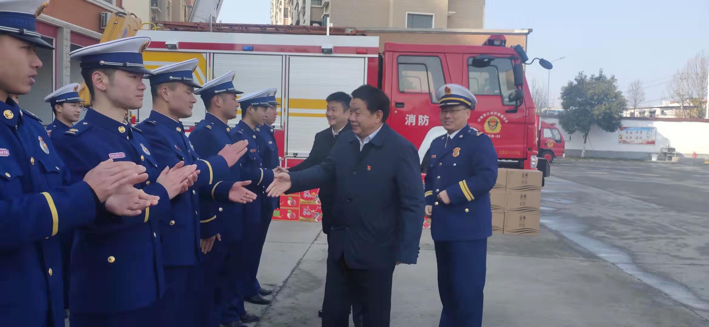 在川匯區(qū)消防救援大隊,李宗喜一行與指戰(zhàn)員們一一握手,并送上節(jié)日的祝福。李湛說,在過去的一年里,消防指戰(zhàn)員牢記使命、履職盡責(zé)、竭誠奉獻(xiàn),是一支拉得出、沖得上、打得贏的鐵軍隊伍,為保障全區(qū)經(jīng)濟(jì)建設(shè)、社會穩(wěn)定和人民生命財產(chǎn)安全做出了突出貢獻(xiàn)。希望大家在新的一年里再接再厲,忠誠履職,為全區(qū)經(jīng)濟(jì)社會發(fā)展做出新的更大貢獻(xiàn)。