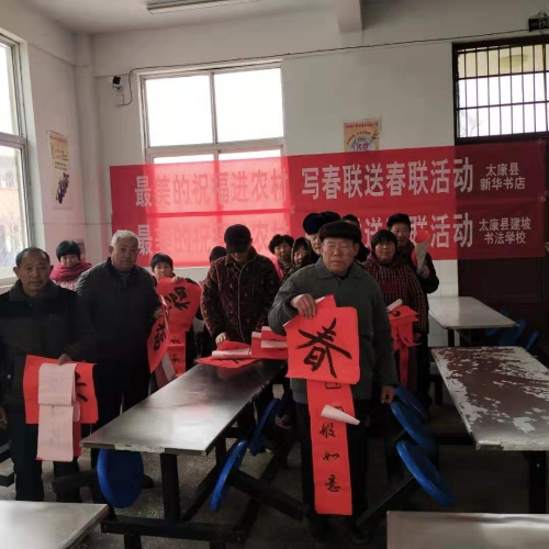 1月22日,在中原出版?zhèn)髅郊瘓F(tuán)公司開展的“最美讀書聲”最美的祝?!捌哌M(jìn)” 活動精神指導(dǎo)下,太康縣新華書店有限公司走進(jìn)太康縣建南社區(qū)開展“書寫春天 溫暖社區(qū)”迎新春活動,為社區(qū)居民寫春聯(lián)、送春聯(lián)。