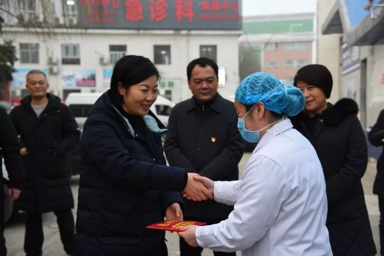 鄲城縣第一醫(yī)療健康服務(wù)集團(tuán)作為河南省新型肺炎救治定點醫(yī)院時刻牽動著縣委縣政府領(lǐng)導(dǎo)的心。1月23日,縣委書記羅文閣、縣政府縣長李全林、縣政府副縣長肖煒來到縣醫(yī)院親切慰問一線醫(yī)護(hù)人員,并給一線工作人員帶去春節(jié)祝福。