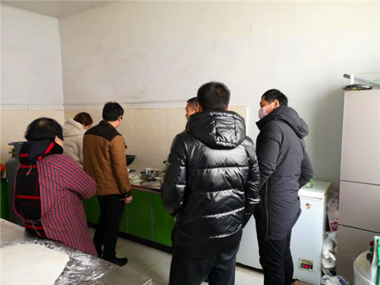 疫情越來越嚴重,鄉(xiāng)干部全部下沉到行政村,搞宣傳、設(shè)卡點、控人流。因為早出晚歸無暇在家就餐,加上飯店閉店,鄉(xiāng)政府伙房每餐都就餐人數(shù)從平時一二十人激增到五六十人。買不到饅頭吳素霞就親手蒸,買不到面條她就親手搟。特別是午間各村卡點人員交接時間不一,送走一波人又來一波。剛洗刷完餐具、清掃好廚房又該準備下一餐了。