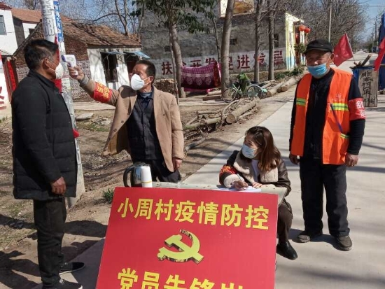 在虎崗鄉(xiāng)小周行政村路口的疫情防控黨員先鋒崗,3名入黨積極分子自發(fā)進(jìn)行輪流值守,積極向群眾宣傳疫情防控知識,勸散聚集人員。“在疫情防控工作中,我們村及時響應(yīng),設(shè)立了黨員先鋒崗,組織黨員和入黨積極分子參與卡點(diǎn)執(zhí)勤、疫情知識宣傳、摸底排查,建立起聯(lián)防聯(lián)控、群防群治的工作體系。”鄲城縣農(nóng)科所駐該村第一書記謝付振說。