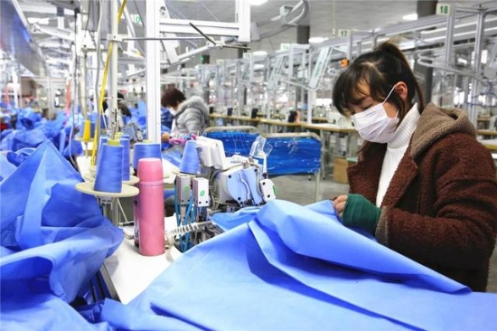 “進(jìn)廠員工每天都要佩戴口罩,車間里一天三次消毒,身體不適要及時(shí)向村委會(huì)匯報(bào)……”2月22日,安靜了多日的項(xiàng)城市三店鎮(zhèn)黃莊行政村“扶貧車間”里又熱鬧了起來,30多名附近村的村民熟練地操作著縫紉機(jī),隨著清脆的機(jī)杼聲,一捆捆丙綸布匹滑下生產(chǎn)線。