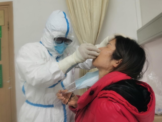 賀志勇為患者采鼻咽試紙