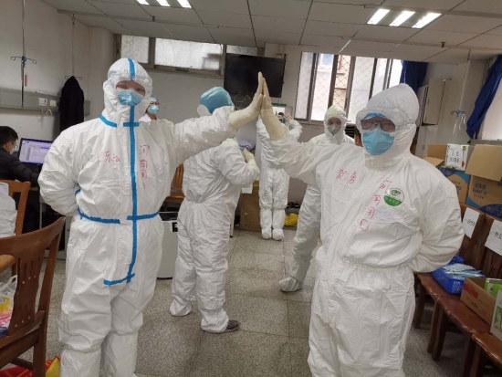 3月3日,周口市第三批援鄂醫(yī)療隊慷慨出征,這支醫(yī)療隊由周口港區(qū)醫(yī)院8位醫(yī)護人員組成,當晚抵達武漢,經(jīng)過幾個小時的培訓,對專業(yè)防護流程進行了優(yōu)化。第二天,周口港區(qū)醫(yī)院醫(yī)療隊正式進駐武漢商職醫(yī)院,當天下午開展新冠肺炎患者的救治和護理工作。