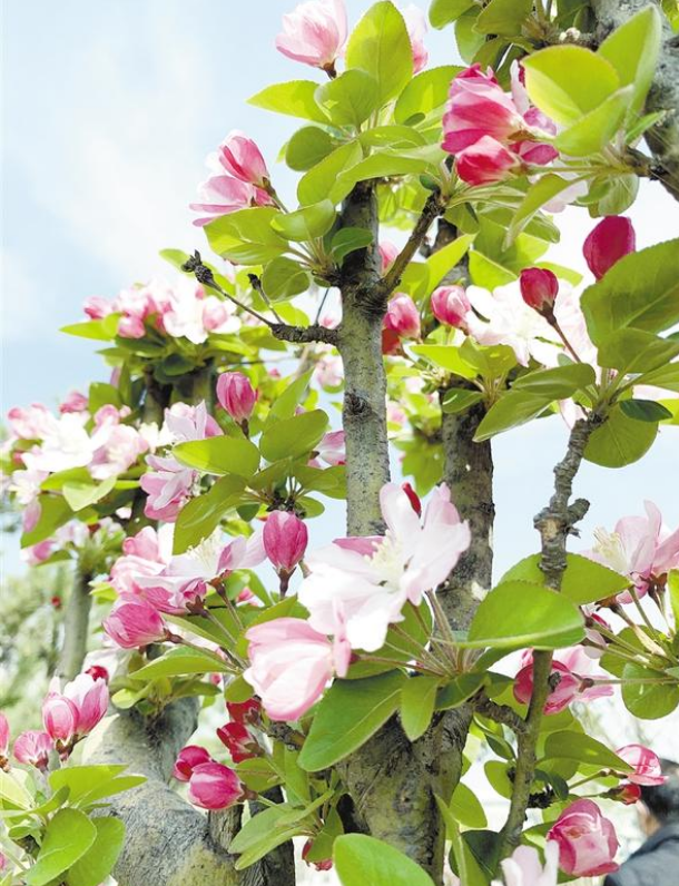 海棠花姿瀟灑、花開(kāi)似錦,自古以來(lái)是雅俗共賞的名花,素有“花中神仙”“花貴妃”“花尊貴”之稱。海棠還有“國(guó)艷”之譽(yù),在皇家園林中,它常與玉蘭、牡丹、桂花相配植,形成“玉堂富貴”的意境。
