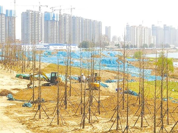 3月20日,沙潁河周口大道至八一大道北岸生態(tài)改造工程正在緊張施工。該工程全長約4.6公里,整體設(shè)計(jì)圍繞沙潁河主題印象展開,濱水景觀將展示豐富多彩的周口文化底蘊(yùn)。目前,周口大道至大慶路段的景觀綠化和市政道路正在加快施工。記者 孫安平 攝