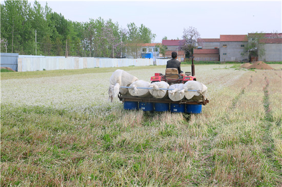 4月15日,河南省鹿邑縣谷陽辦事處張辛行政村五里廟自然村種植的近百畝蒲公英進入種子收獲期,該村黨支部書記張正濤及時組織人力,在做好疫情防控的同時,抓緊時機進行采收。除種植蒲公英外,該村還引導(dǎo)農(nóng)戶開展葡萄、草莓等果蔬種植、牡丹、艾草等中藥材種殖,希望通過特色種植讓村民在家門口實現(xiàn)就業(yè)增收,帶動貧困九日早日脫貧致富。(記者 李瑞才 攝)