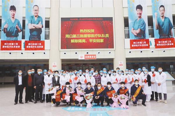 本報(bào)訊 (記者 宋風(fēng) 文/圖) 4月15日,周口港區(qū)醫(yī)院8位援鄂醫(yī)療隊(duì)員解除隔離回到單位,港區(qū)醫(yī)院為他們舉行了熱烈的歡迎儀式(右圖)。港區(qū)黨委委員張東立出席歡迎儀式,對港區(qū)醫(yī)院的8位抗疫英雄圓滿完成援鄂醫(yī)療救治任務(wù)平安歸來表示祝賀。