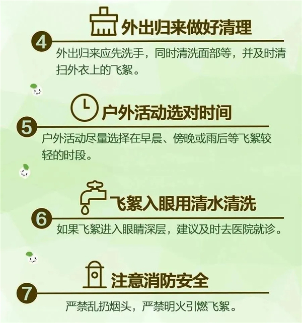 2.外出返回后應(yīng)先盡快洗手,及時(shí)清掃外衣上的飛絮。