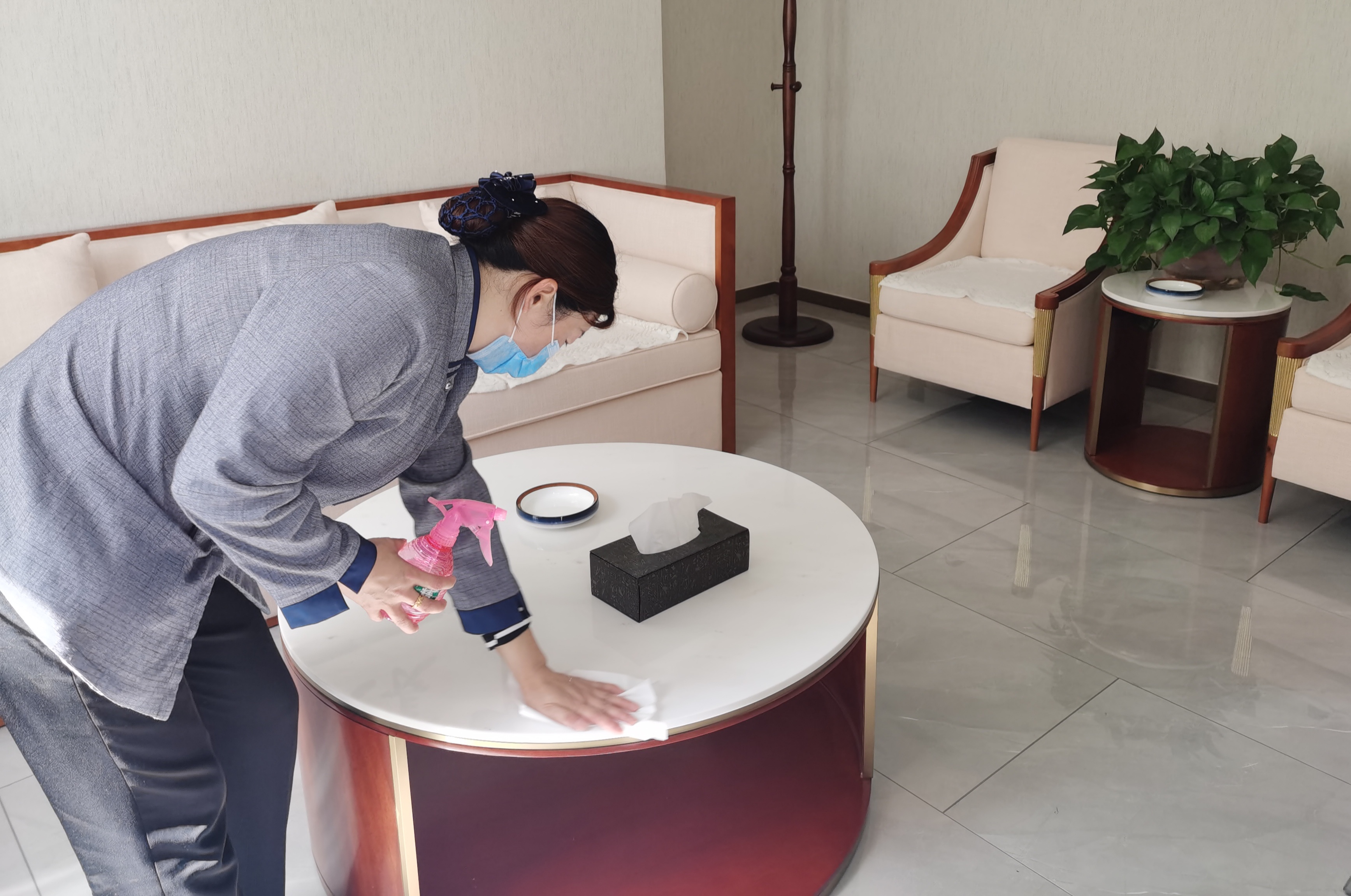 5月10日,記者在“兩會”駐地酒店看到,酒店工作人員不時對客房和公共場所、會議室進(jìn)行消毒、擦拭。受疫情影響,“兩會”駐地酒店工作人員認(rèn)真和精心準(zhǔn)備,加強(qiáng)了對代表、委員駐地消殺防疫,還貼心地放置了一次性電梯按鍵專用紙、酒精等物品。