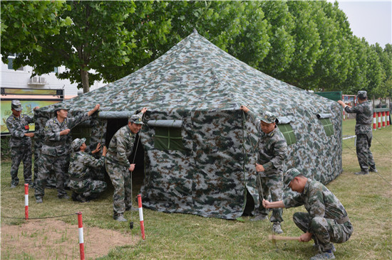 在這些民兵當(dāng)中,擔(dān)負(fù)醫(yī)療救護(hù)的綜合勤務(wù)排更是不簡單。他們是來自周口長城醫(yī)院的醫(yī)護(hù)人員,在今年的抗疫戰(zhàn)中,他們充分發(fā)揮基層黨員民兵作用,無論白天黑夜,冒著雨雪嚴(yán)寒,在抗疫一線的卡點(diǎn)上都留下了他們迷彩身影。趙軍濤是來該醫(yī)院的醫(yī)護(hù)人員,同時(shí)也是一名退伍老兵,他說,新時(shí)代的強(qiáng)軍戰(zhàn)歌已經(jīng)奏響,要以此次集訓(xùn)為契機(jī),不斷強(qiáng)化練兵備戰(zhàn)的緊迫意識、危機(jī)意識,以飽滿的政治熱情投入到緊張的訓(xùn)練中,用優(yōu)異成績?yōu)榇▍R區(qū)的后備力量建設(shè)增光添彩。