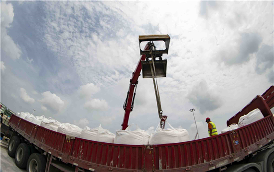 近日,吞吐量達(dá)千萬(wàn)噸的周口港口非常忙碌,工業(yè)用堿成為當(dāng)前主要的運(yùn)輸貨物,由周口本土生產(chǎn)的堿源源不斷地在此卸車裝船,運(yùn)往下游的蕪湖。作為內(nèi)陸最大的內(nèi)河航運(yùn),沙潁河通江達(dá)海,成為2重要的黃金水道。記者 梁照曾 攝
